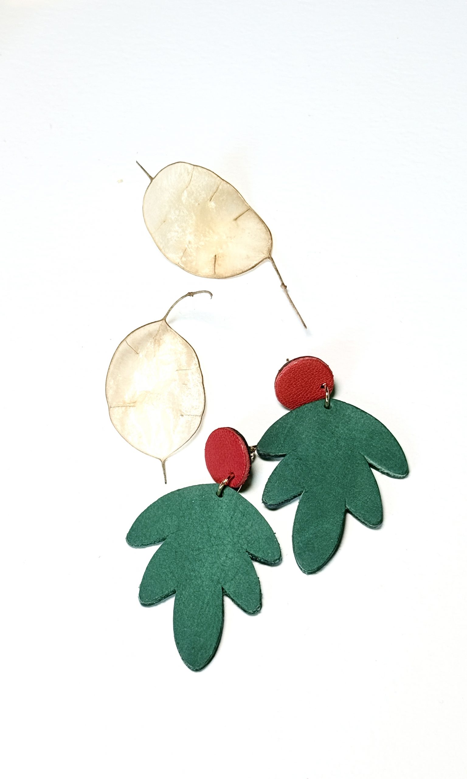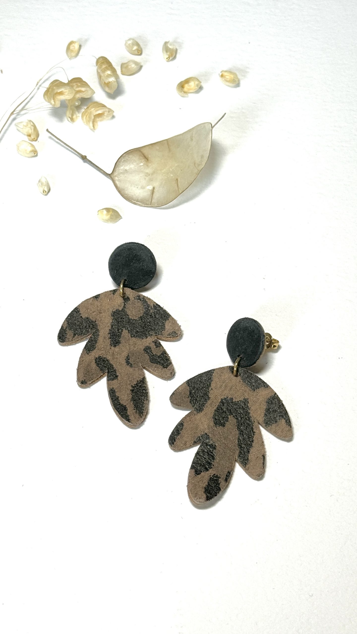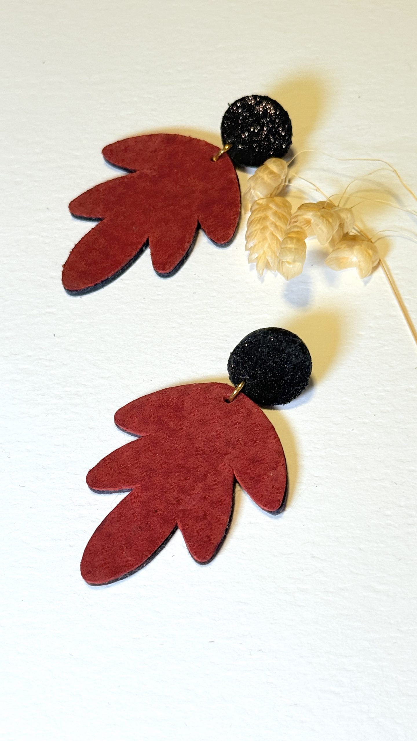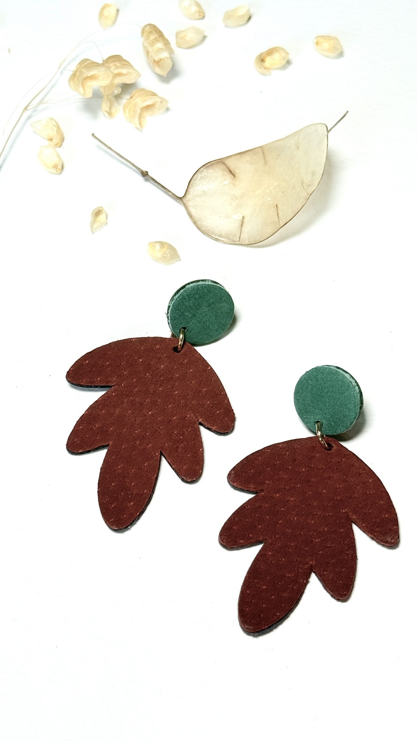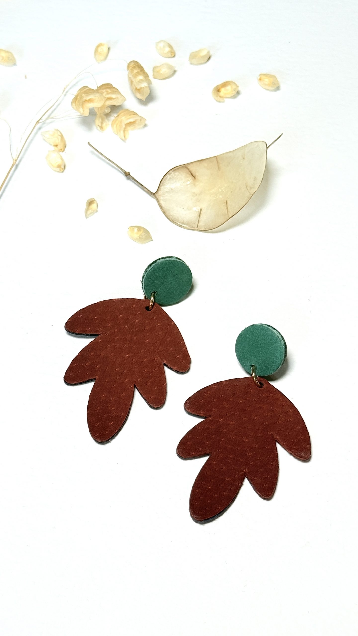 Les boucles d’oreilles SEPTEMBRE sont une création artisanale unique en cuir, inspirée par la nature .